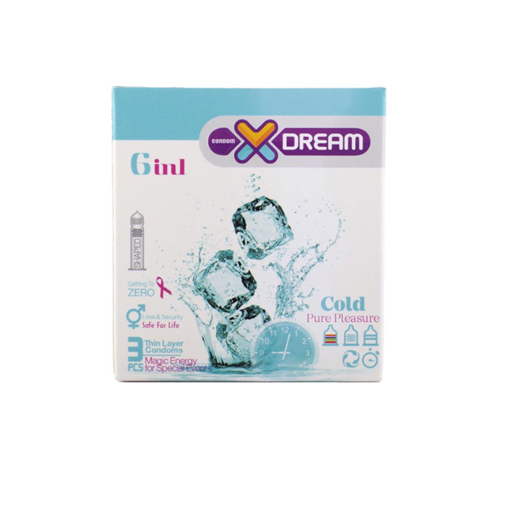 خرید کاندوم ایکس دریم 3تایی مدل COLD PURE PLEASURE، حاوی ماده خنک کننده جهت خنک شدن واژن در هنگام مقاربت و افزایش میل جنسی، نقطه های برجسته در سرتاسر کاندوم جهت افزایش تحرک و طراحی آناتومیک و کانتوری برای تاخیر فیزیکی انزال و افزایش لذت مورد استفاده قرار میگیرد.