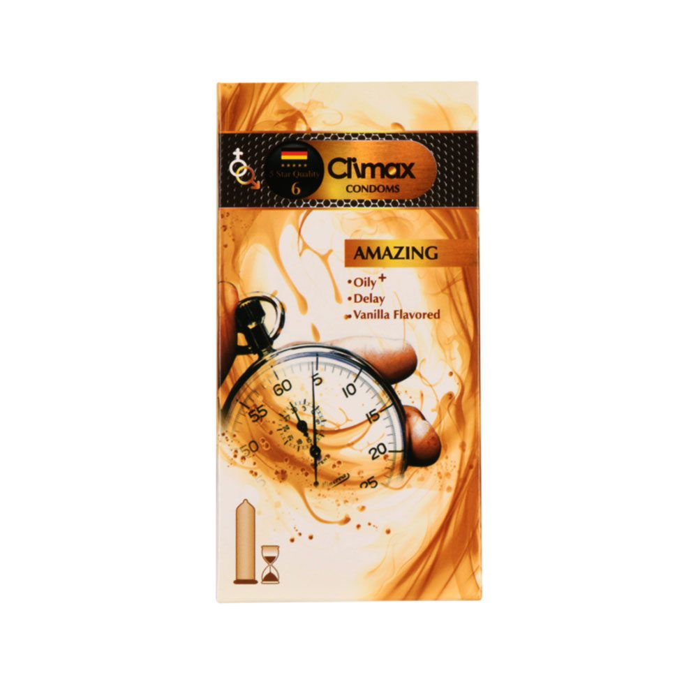 خرید کاندوم روان کننده تاخیری کلایمکس مدل AMAZING با اسانس وانیل، حس خوب را با کاندوم های جدید Climax محصولی جدید و کاملا حرفه ای برای افرادی که زود انزالی دارند کاربرد بسیار مناسبی خواهد داشت. بسیاری از افراد هنوز از ساختار کاندوم ها اطلاعی ندارند اما برای درک بهتر لازم است تا با ساختار آن آشنا شوید. کاندوم کلایمکس از ماده لاتکس 100% طبیعی ساخته شده که عملا یک پوشش کامل برای جلوگیری از انتقال بیماری را در روابط جنسی ایجاد می کند.